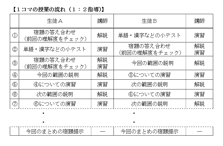 生徒さんが2名いて、講師が1名で同一時刻にスタートして同一時刻に終わるというのは、どのように進行しているのだろう?