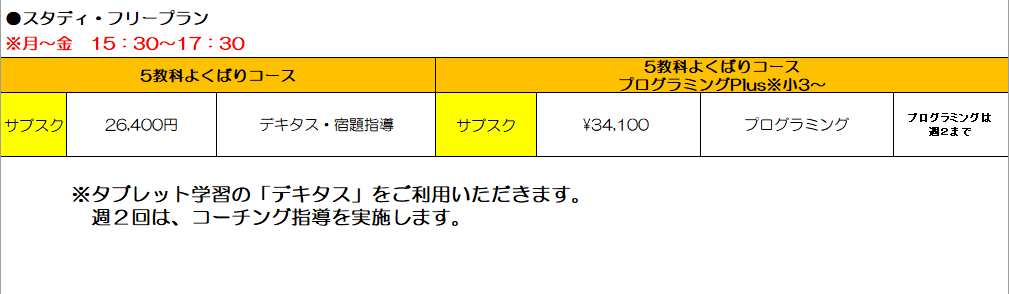 例えば小学生がスタディ・フリープランを選択されて、5教科よくばりコースとして通塾された場合は、