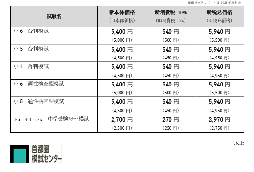下の画像は「首都圏模試センター」の料金です。23年から24年で料金はちょっと上がりましたが、これは紙代なども高騰しているので、致し方ないことかと思います。
