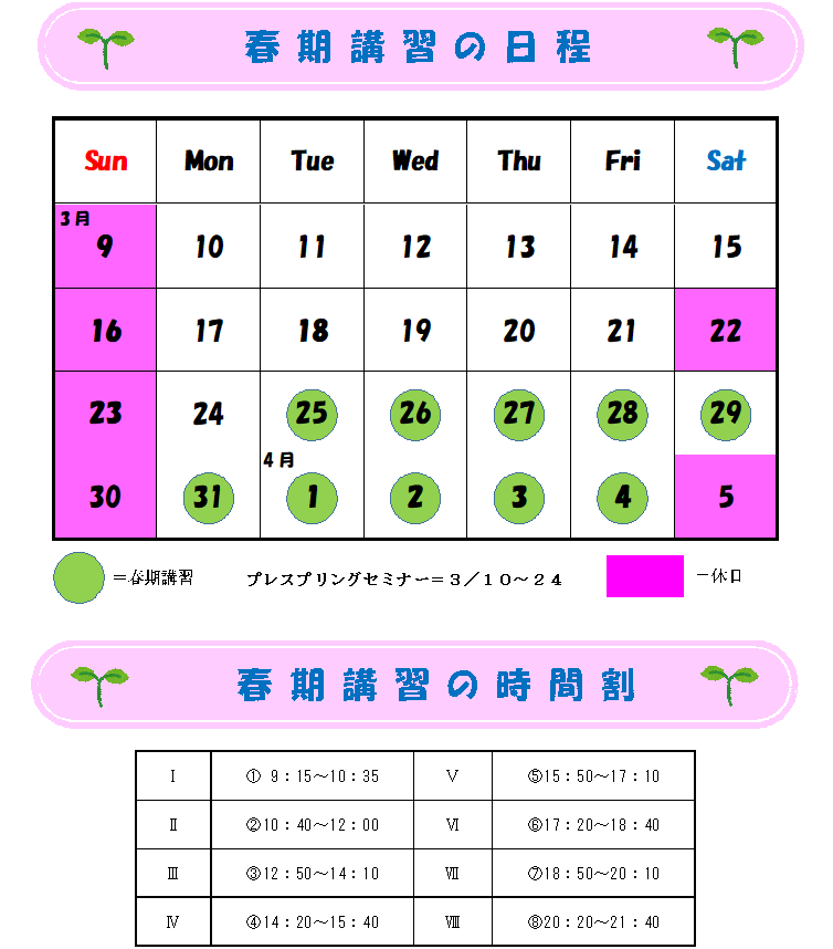 そういった意味でも、新学年での学習目標の設定と新学期の学習への準備を春休み中にしっかりとしておく意義は大きいものがあります。