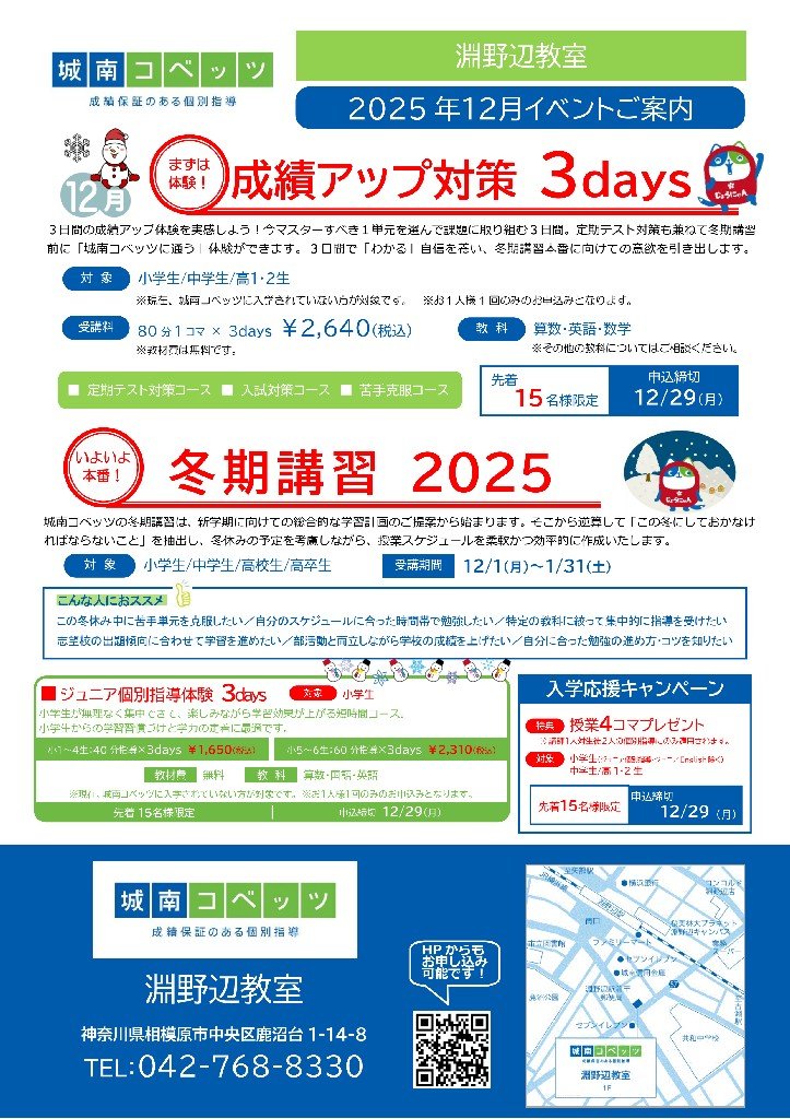 自分のペースで集中できる雰囲気もあり、城南コベッツに通うことができて本当に良かったです。