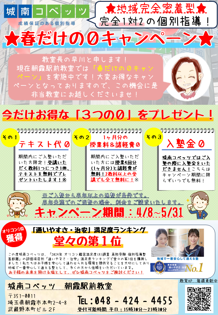 朝霞駅前教室・教室長の早川です。