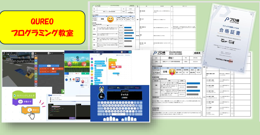【QUREOプログラミング】コベッツではプログラミング授業も受付中!!今、プログラミングは〈必修〉になっています。プログラミング的思考:つまりは「順序立てて考え、試行錯誤をし、物事を解決する力」を楽しみながら育みます!そしてコベッツは「プログラミング検定」も実施しており、毎回多数の合格者を輩出しています。