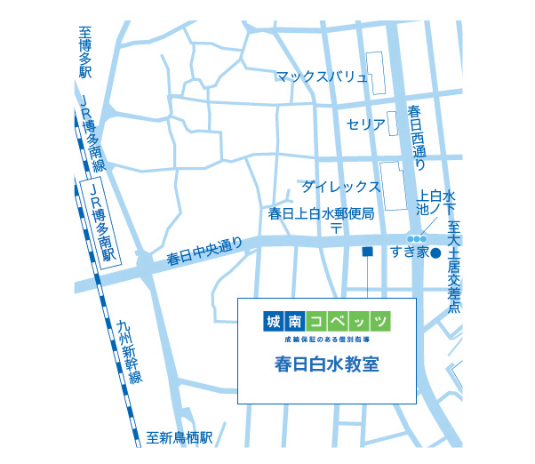 私たち城南コベッツ春日白水教室は、「結果へのこだわり」を追求し、一人ひとりに「成功体験」を積み重ねていただくことで、お子さまに時代を生き抜くための「自信」を持ってもらえるように指導いたします。 学校の勉強を確実に理解できるから、得点が上がり、成績が上がる。そんな「成功体験」を今までの指導経験ノウハウを用いながら作り出し、輝かしい未来への可能性を示していきます。小学生の学習習慣定着指導から、春日西中学校・春日南中学校を中心とした各中学校の定期テスト対策、高校受験対策、大学受験対策まで幅広く学習指導を行っています。成績アップのコツを知りたい方、進路についてお悩みのことがありましたら、是非、城南コベッツ春日白水教室へお気軽にご相談ください。