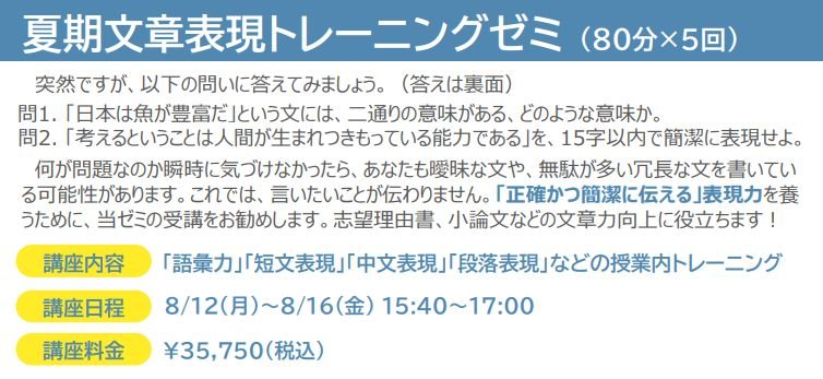 【夏期文章表現トレーニングゼミ(80分×5回)】
