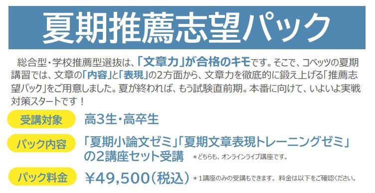 そこで、2024年「夏期推薦志望パック」をリーズナブルなお値段で提供させて頂きます。