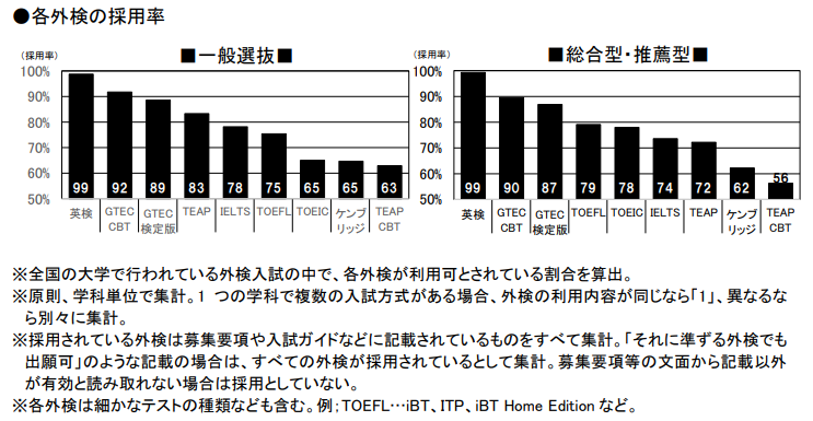 一般・総合型・推薦型いずれも「英検」がほぼ全ての入試で利用可能