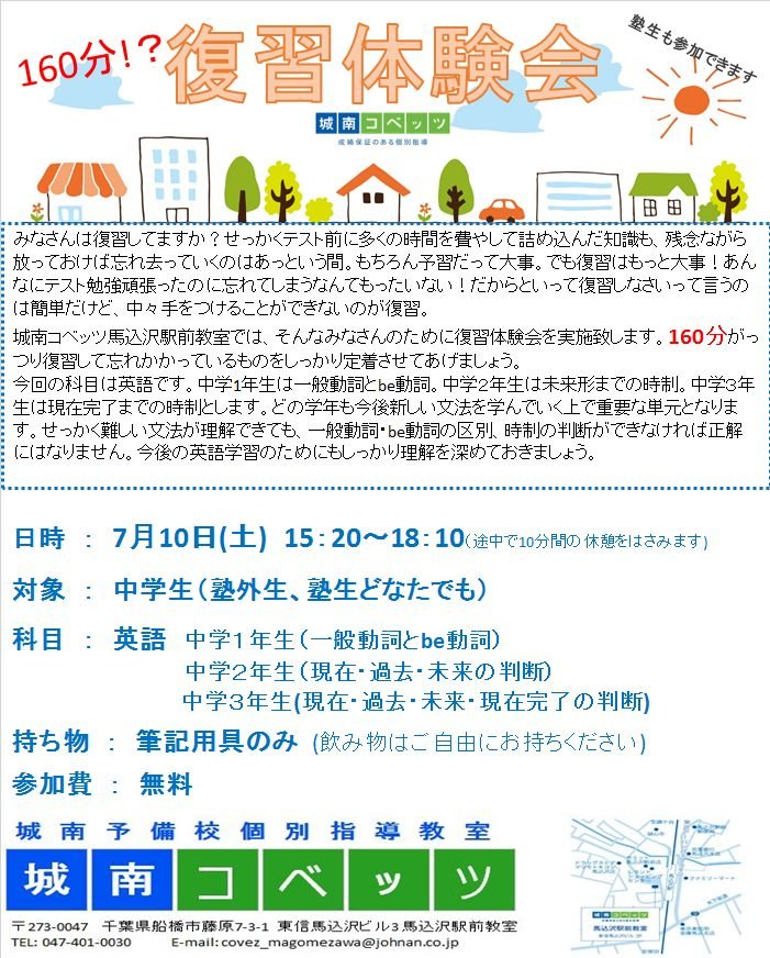 夏休み期間に入ってしまう前に、今回のテスト範囲の復習をしておきましょう。