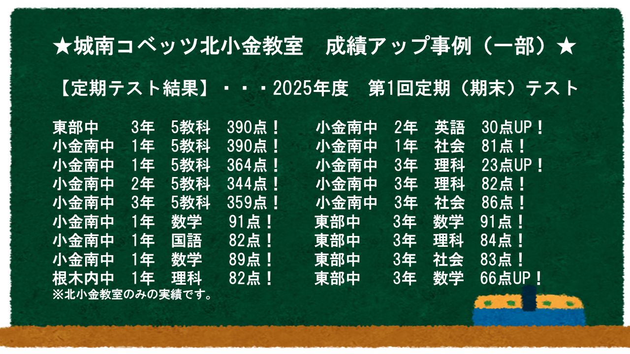 小金中、小金北中、小金南中、根木内中、東部中などの近隣中学校をきっちりフォローします。