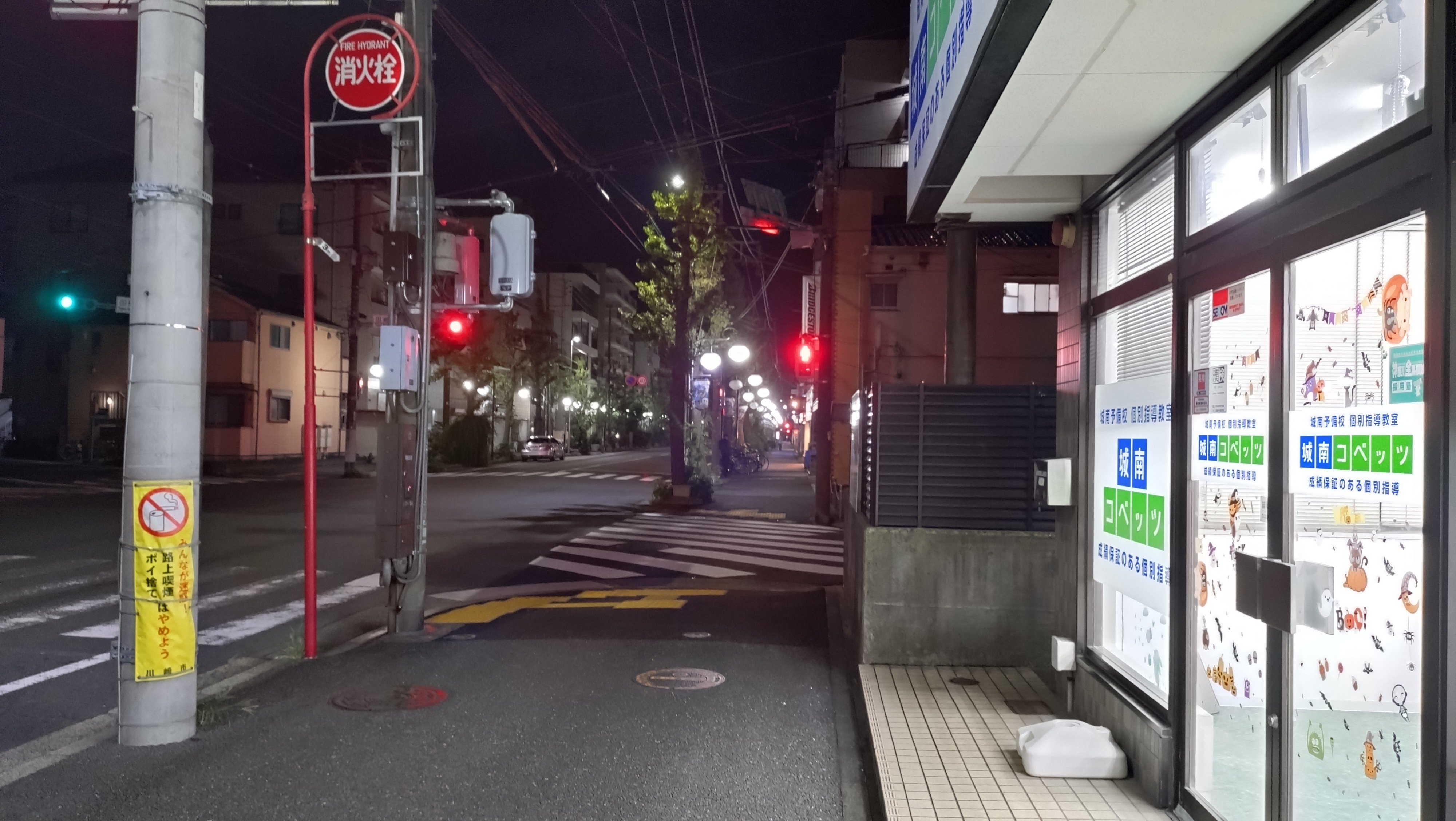 街灯で夜でも鋼管通りは明るいです