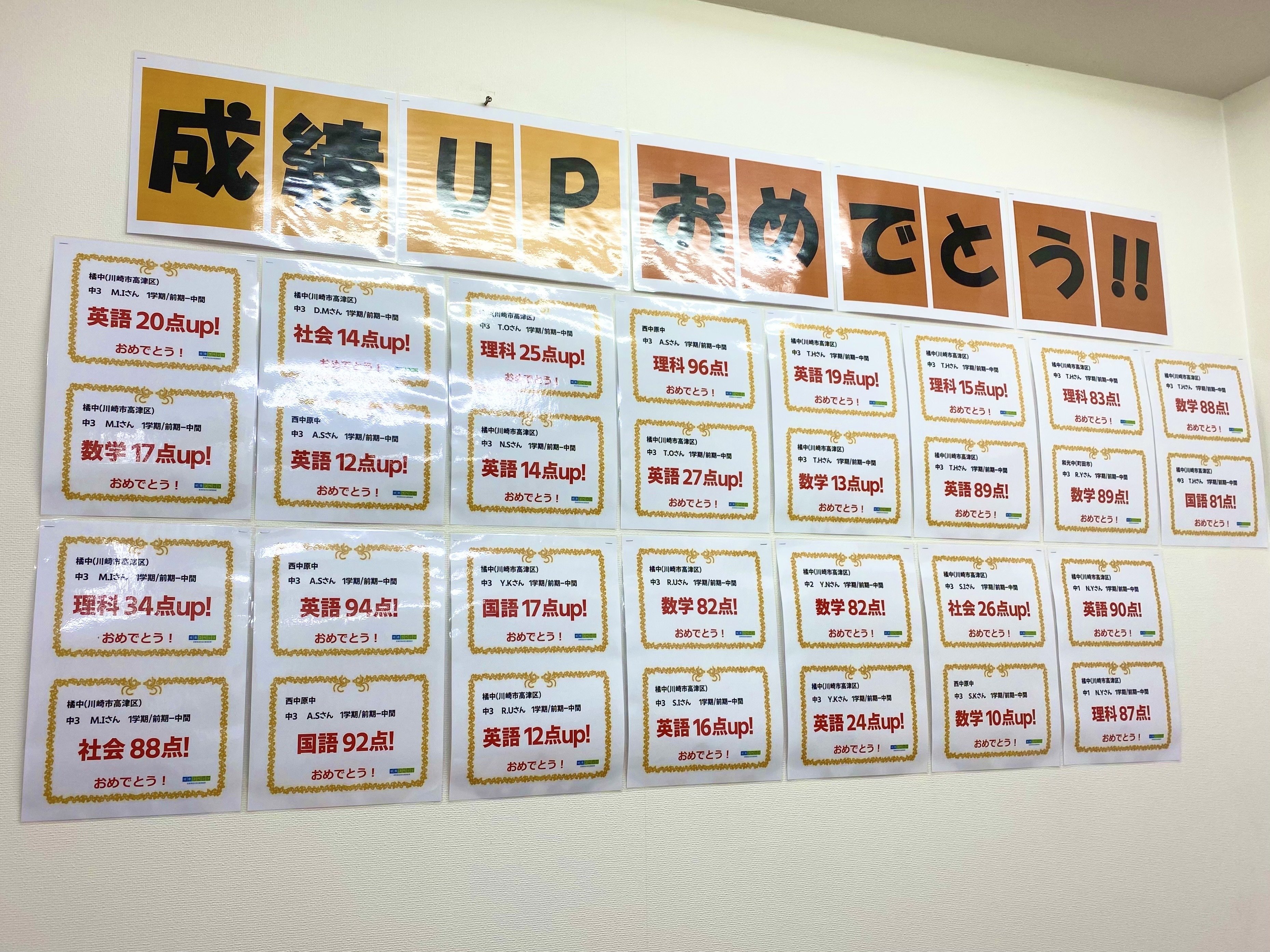 テスト終了後、一番生徒さんの喜怒哀楽も激しくなる時期です。ぜひ、勉強で相談したいことがある、次のテストへ向けて点数を上げたいというお子様がいる家庭の方は武蔵新城教室にご連絡ください。 ※体験授業も行っております。