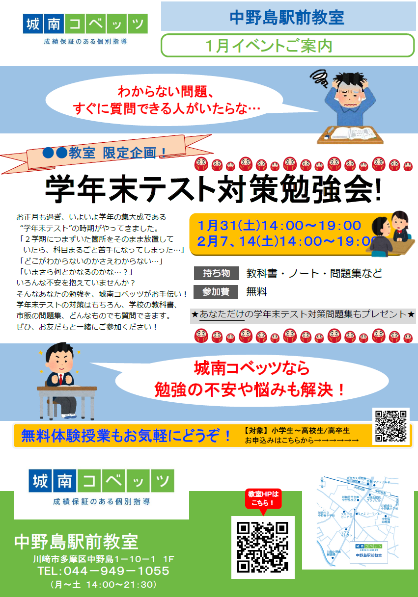 城南コベッツ中野島駅前教室:学年末テスト対策勉強会を申し込む