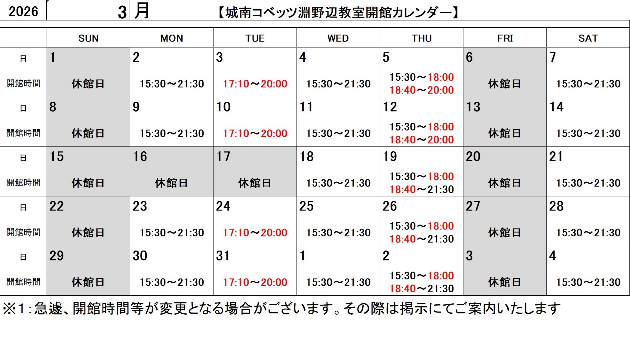 ※日曜日、金曜日を除く