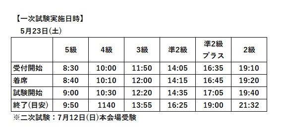 城南コベッツ青葉桂台教室は、準会場登録しており、一般受験者の方も受け入れしております。準会場受験を検討されている方は下記情報をご記入の上、教室までメールにてお問い合わせください。(e-mail:covez_katsuradai@johnan.co.jp)折り返し、担当よりご連絡させていただきます。・受験される方のお名前・受験級・ご連絡先(電話番号)実施予定日:5/30(土)各級の詳細タイムスケジュールにつきましては、下記をご参照ください。準会場受付締切:4/22(水)
