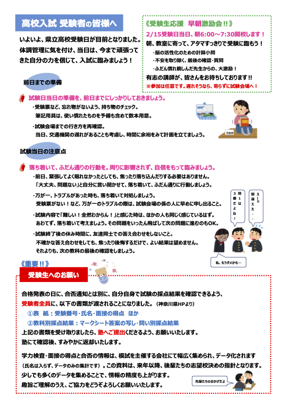 時間帯にご注意の上、ご来校ください。