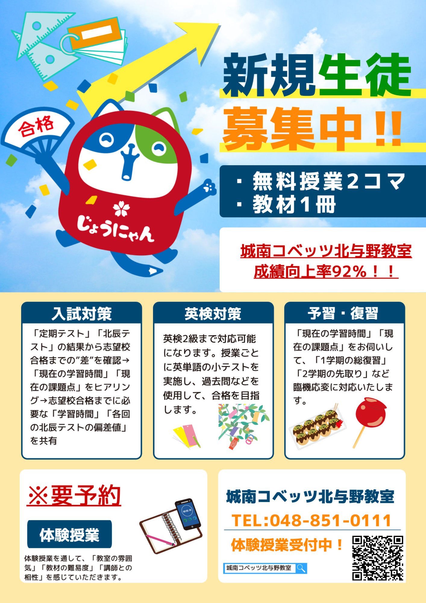 また、定期テストや北辰テスト前には対策授業も実施していただき、テストも怖くなかったです。