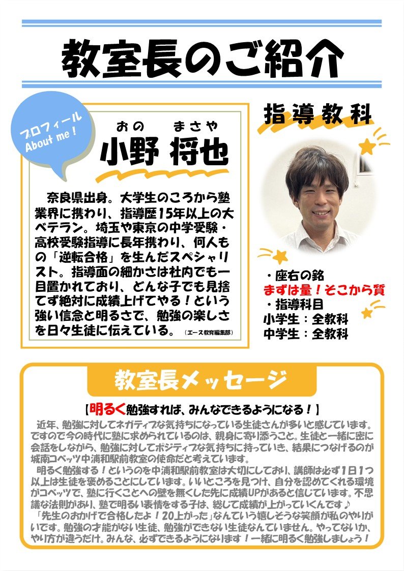 1人1人に真摯に向き合ってくれました。教室全体の雰囲気が明るく、通いやすかったです。多様な教材を用いて授業してくださったのでより深く学ぶことができました。授業だけでなく「自習時間」もサポートしてくださったので安心して学ぶことができました!