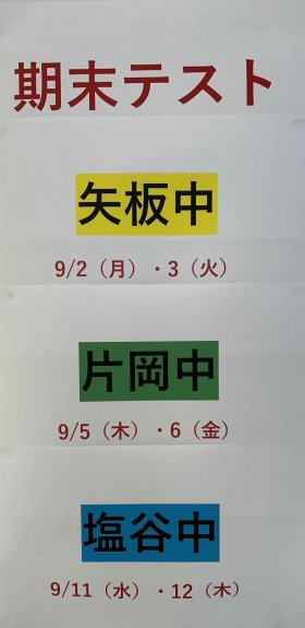 中間テストでの反省点を活かし、期末テストでは納得のいく結果を残していきましょう!