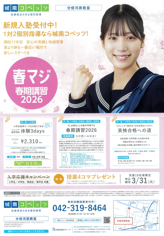 分倍河原教室のお知らせ