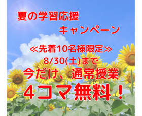 8/30(土)までの入塾で、通常授業4コマ分が無料(先着10名様限定)!