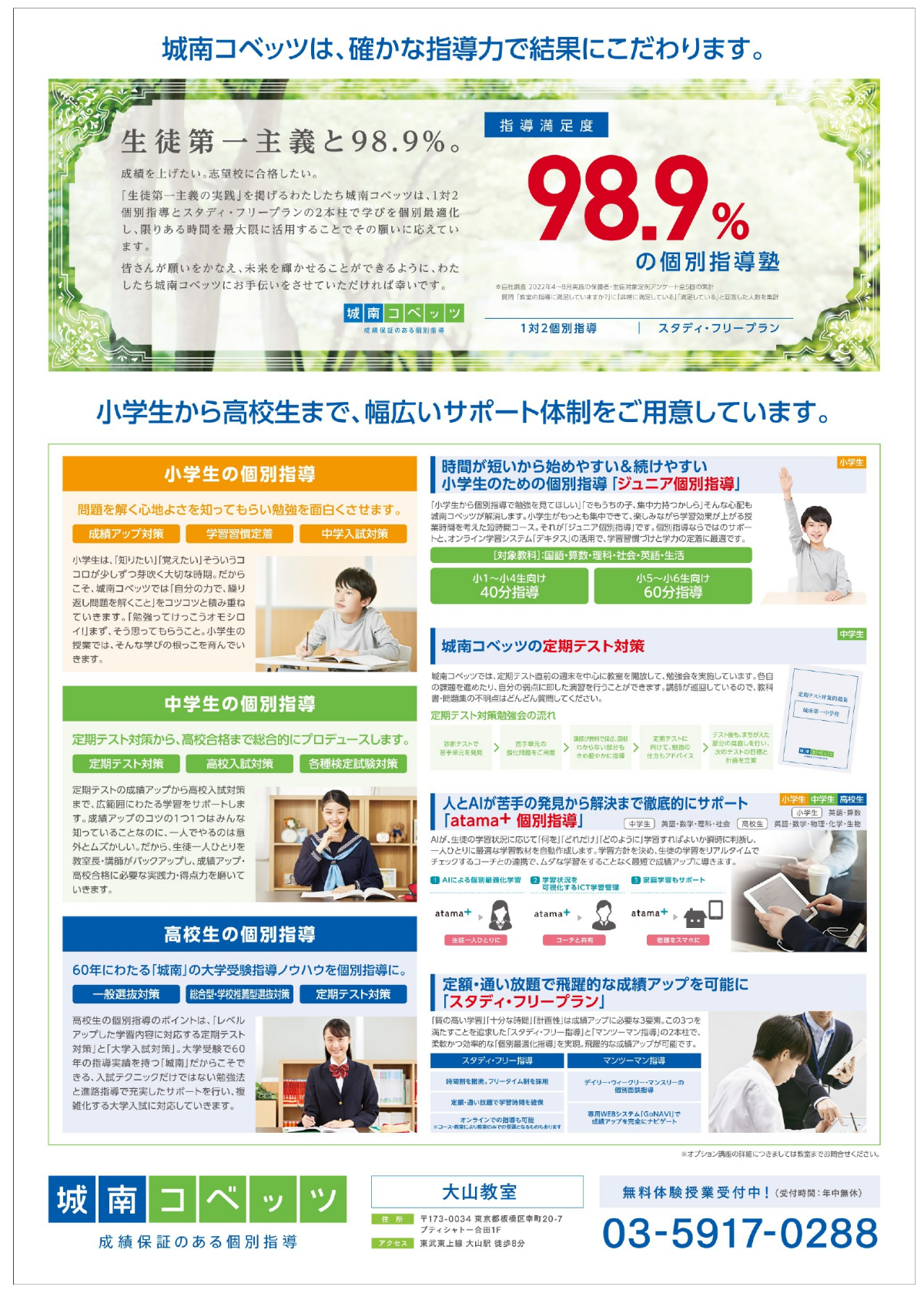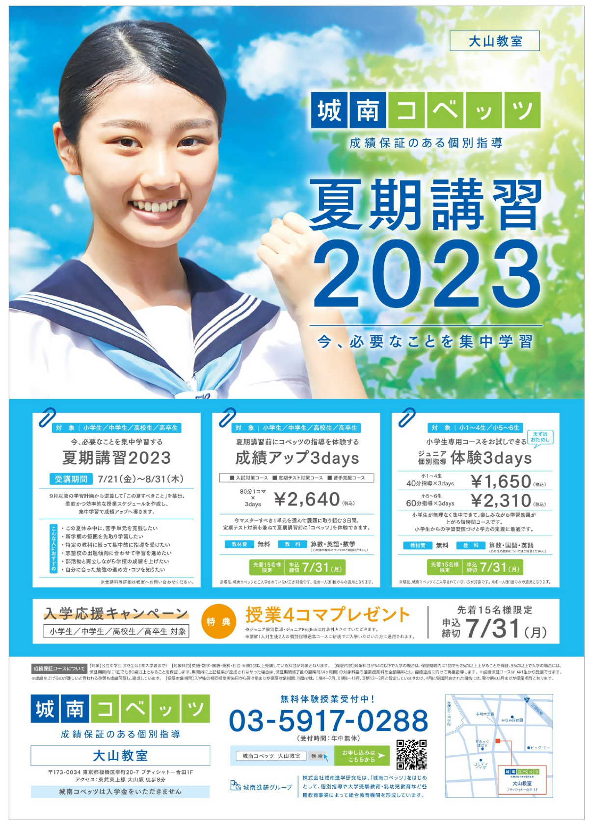 東武東上線大山駅から徒歩8分・板橋第二中学校から徒歩1分 の個別指導塾【城南コベッツ大山教室】