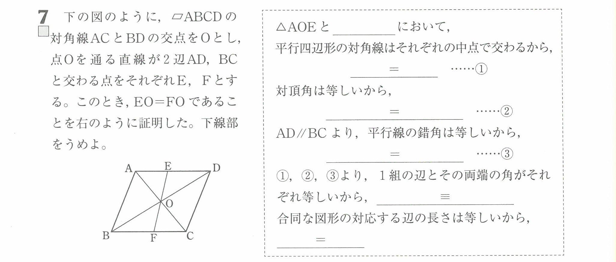 今、多くの学校では証明問題を「穴埋め式」で解かせています。