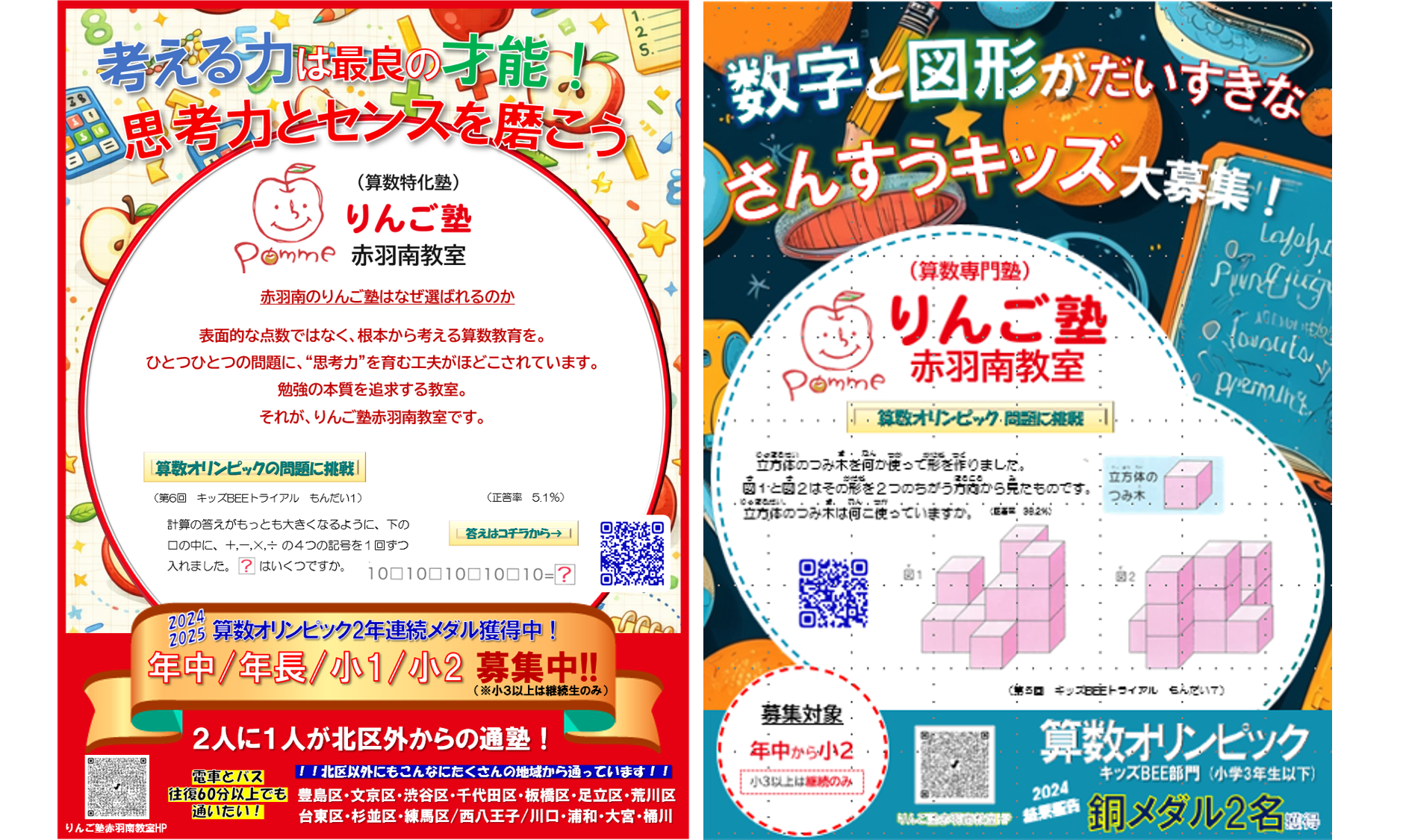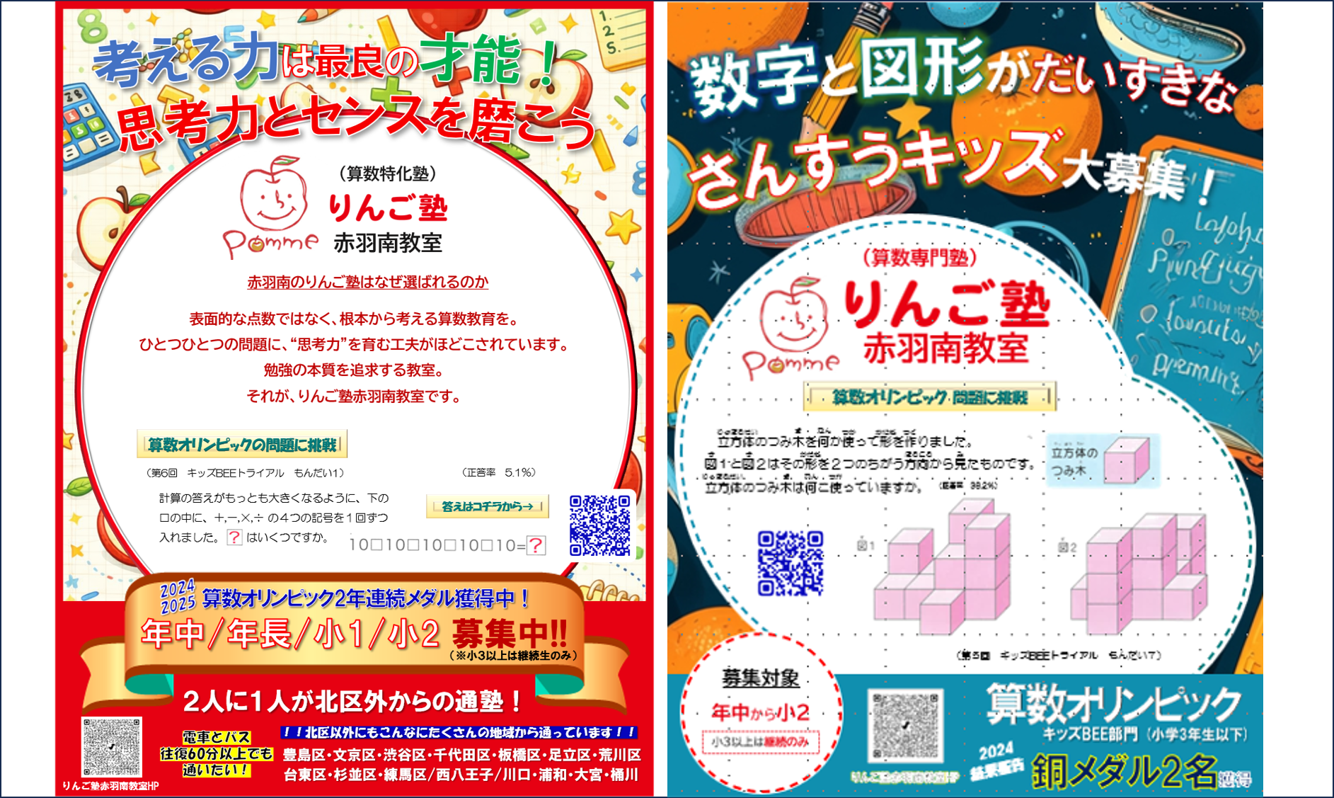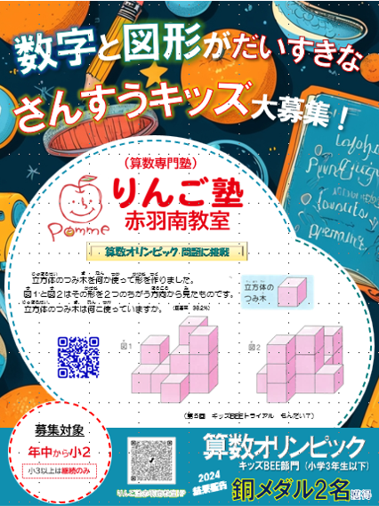 りんご塾赤羽南教室では、小学2年生までを募集対象とした算数特化型の塾です。