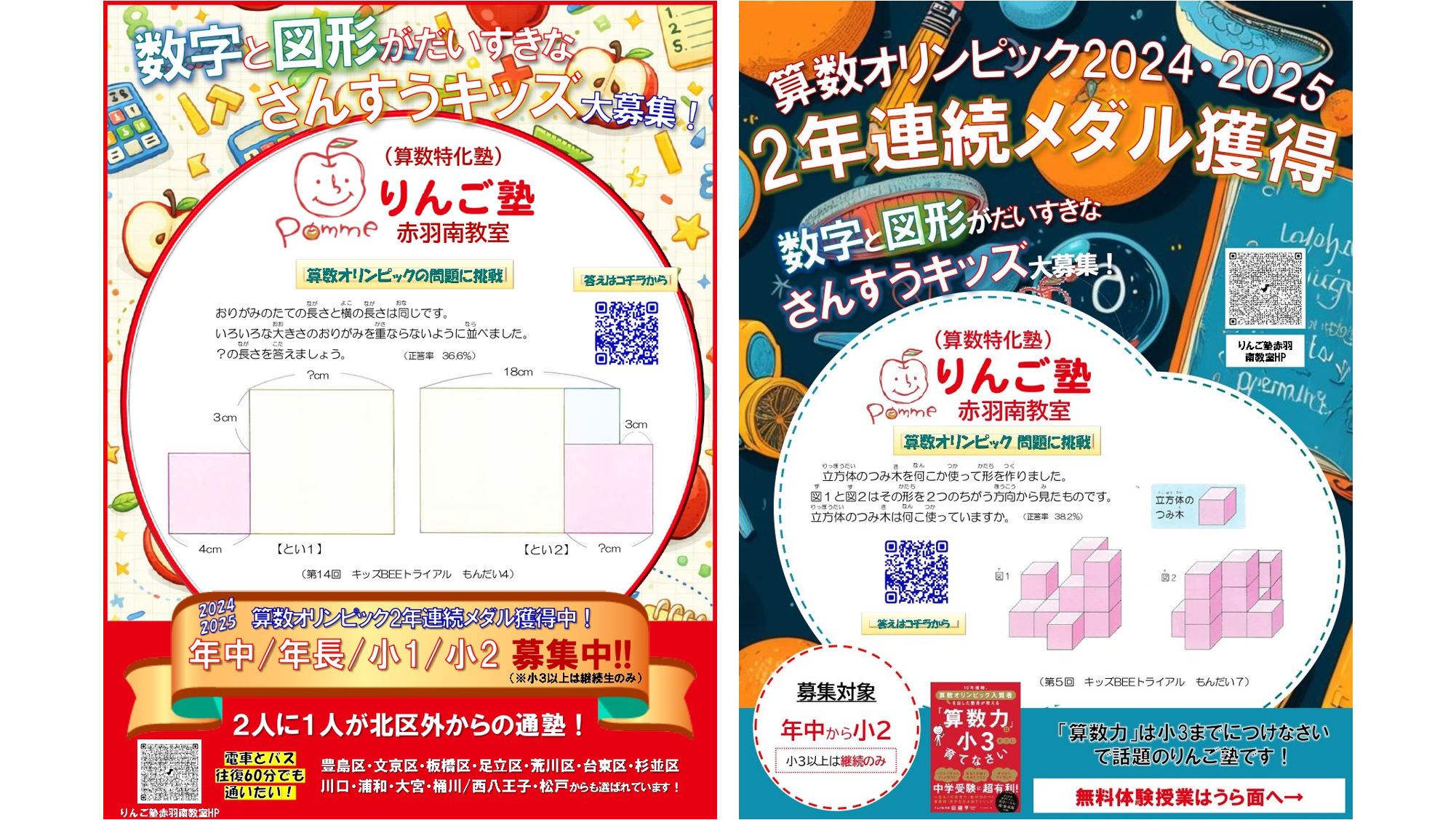 【算数から論理的思考力を育てる】りんご塾赤羽南教室です!<算数オリンピック><算数検定>