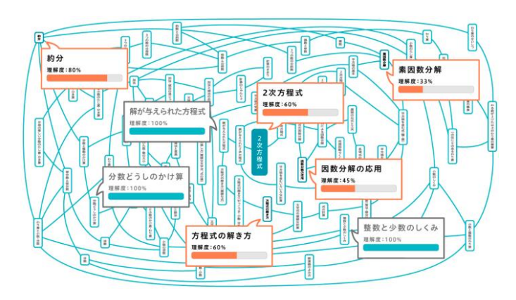蓄積されたデータを元に、理解が不十分な単元が「講義」または「演習」として生徒に提示させるという仕組みです。