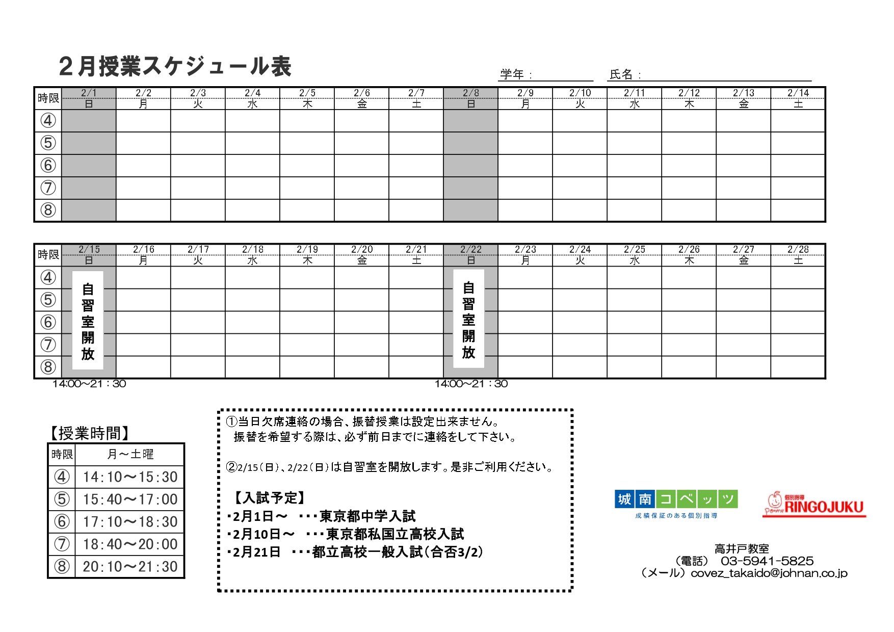 高井戸教室 直通TEL