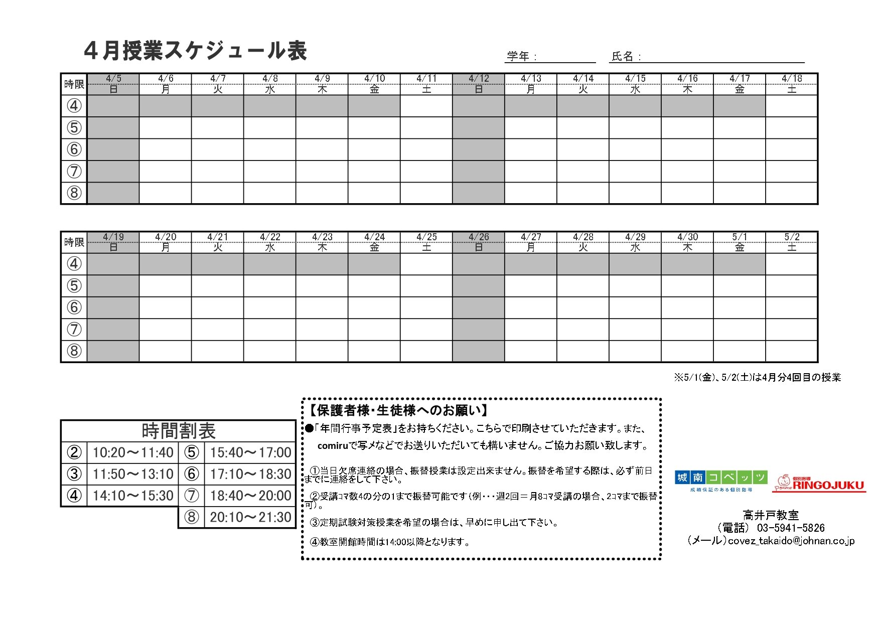 高井戸教室 直通TEL