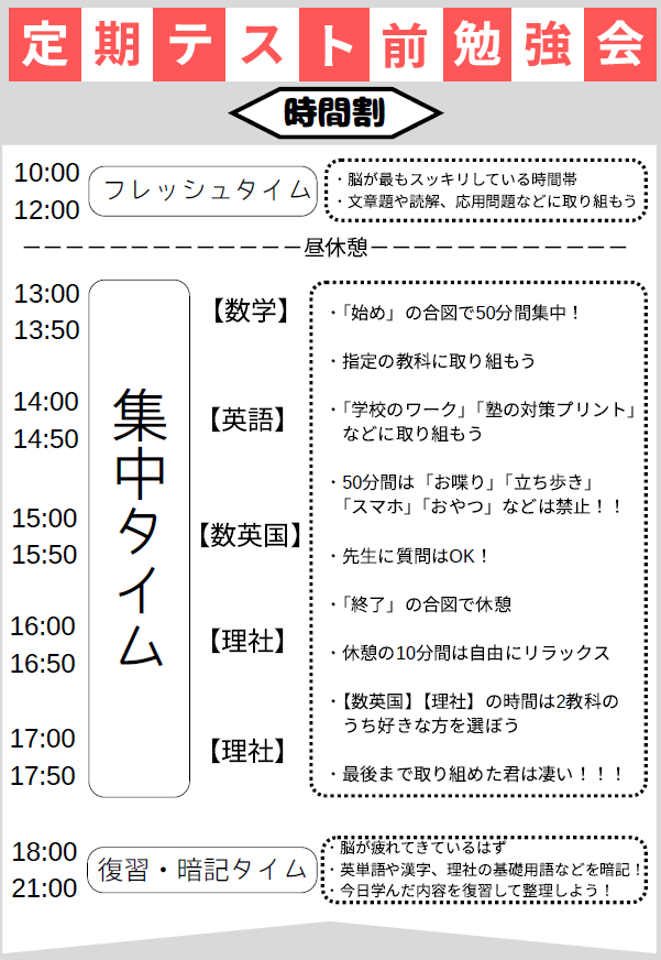 以上が当教室の基本的な考え方、やり方の『軸』の部分です。一人ひとりの性格や得意不得意などを踏まえると、アプローチの仕方は様々であり、一つの正解はありません。しかし、「生徒に成長してほしい」という思いからは決してぶれることなく、より良い方法を日々模索し続けています。